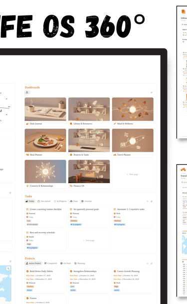 Life OS 360° helps you manage your entire life in Notion — habits, tasks, and projects, all in one clean dashboard for 2026.