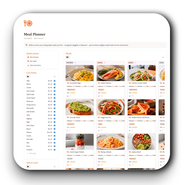 Add and organize Breakfast, Lunch, Dinner, and Snacks